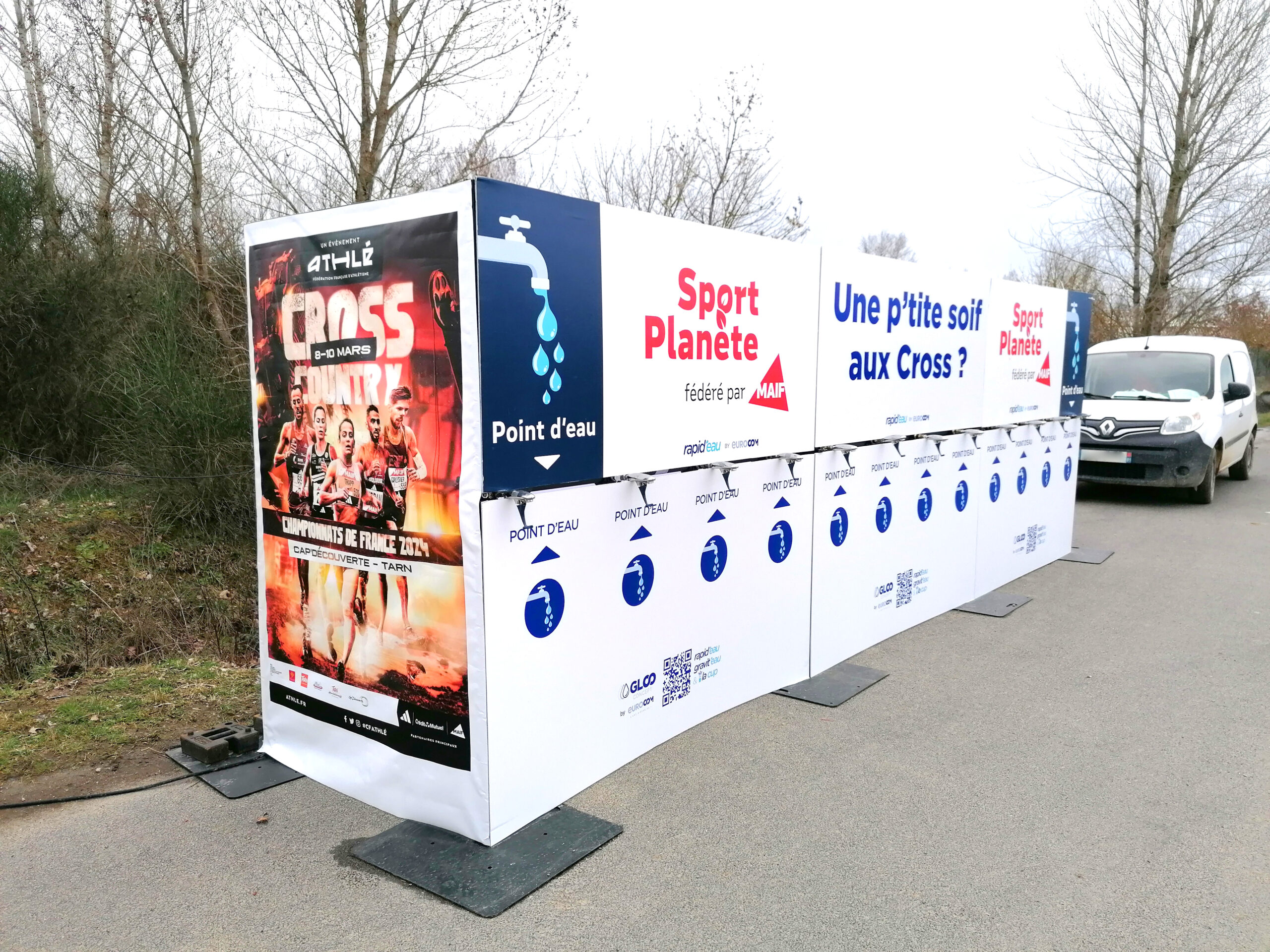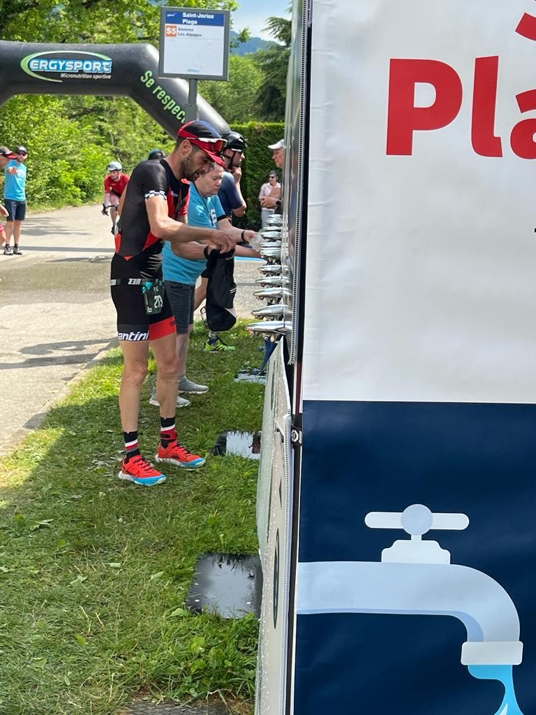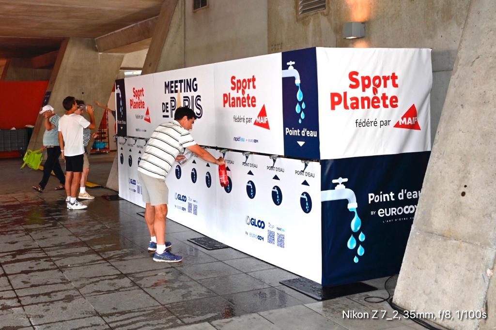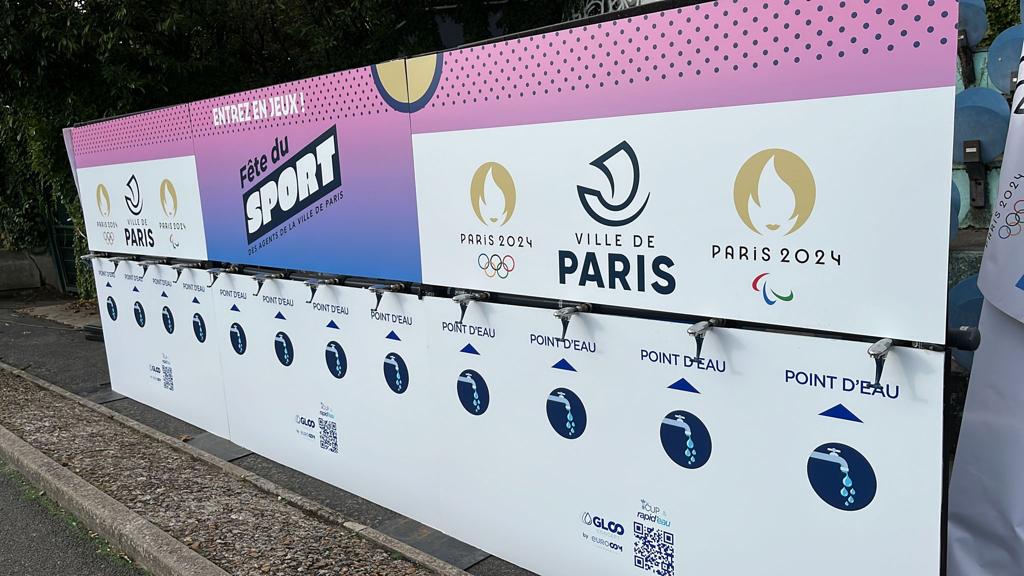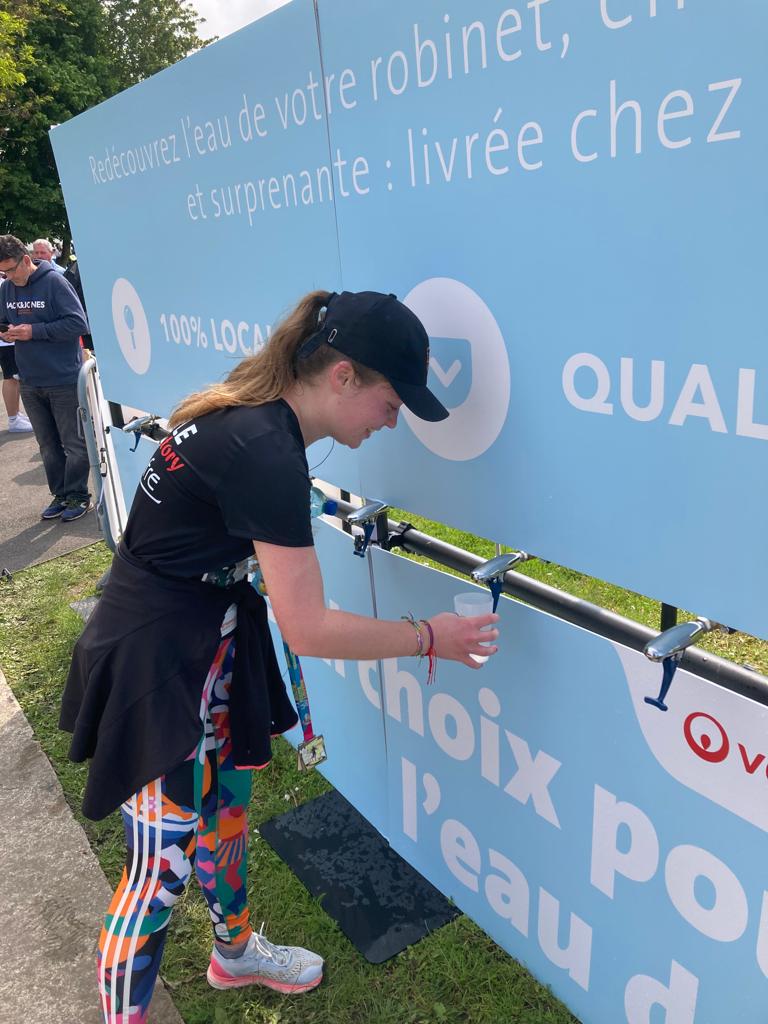 Avec 6 mètres de large et équipée de 12 robinets à débit rapide, parfait pour des grands événements, elle permet aux athlètes de remplir rapidement leurs gourdes ou verres entre deux efforts.