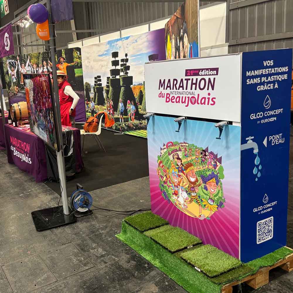 Chez Gloo Concept by Eurocom, nous concevons des fontaines à boissons spectaculaires qui allient design, fonctionnalité et communication visuelle. Véritables outils de mise en scène, nos dispositifs transforment chaque événement en un moment mémorable, tout en offrant une hydratation pratique et personnalisable à vos invités.